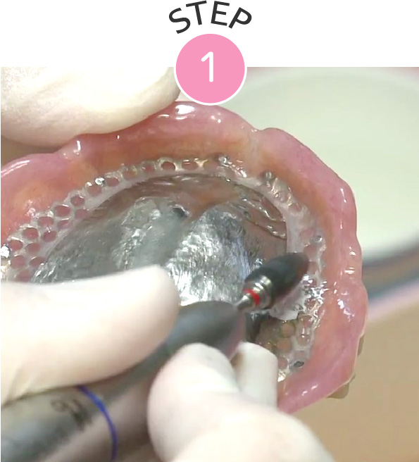 入れる前に、口内に合うように細かな調整(研磨)を行います。